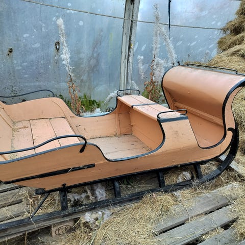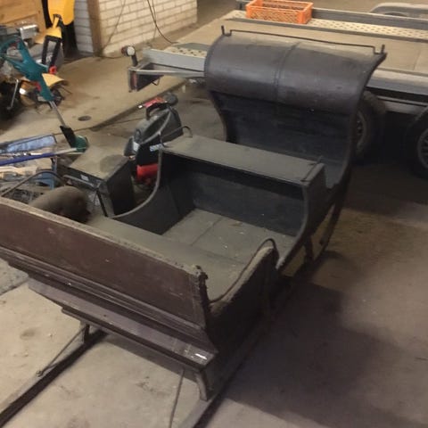 Ajokunnossa oleva nätti kirkkoreki, aina säilytetty säältä suojassa. Jalakset ja aisat kunnossa. Lumijoella.