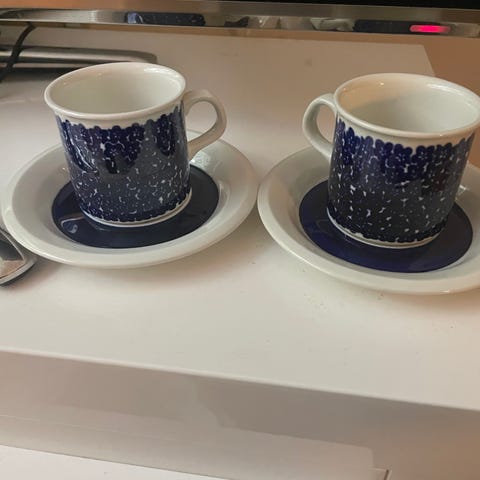 4 kpl kupit ja aluslautanen, yksi kuppi ylimääräinen