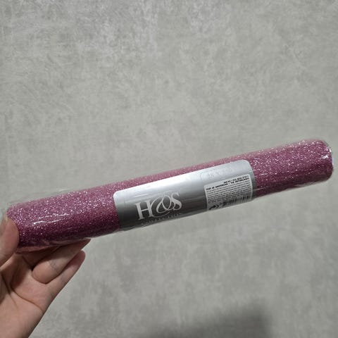 Vaaleanpunainen glitterkaitaliina. Useita metrejä, kuusi rullaa. 15cm leveää.