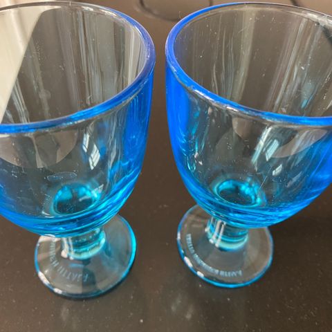 4kpl Iittala Kerttu Nurminen Verna-juomalasi. Värinä turkoosinsininen. Kunto näkyy kuvista, pieniä jälkiä kaikissa.