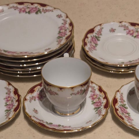 Ruokailuastiastoon kuuluu 12 ruokailulautasta, 12 leipä-/alkuruokalautasta, 9 keittolautasta