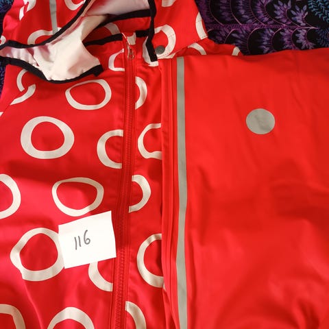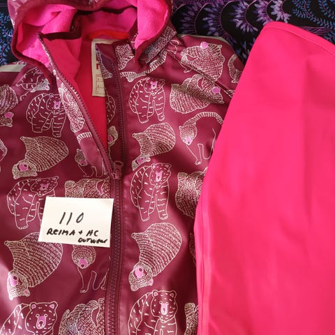 Reiman sadetakki ja kurahousut kokoa 110, ollut käytössä yhdellä lapsella yhden kauden, hyvässä kunnossa. Ostettu 2017. Nouto tai toridiili