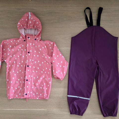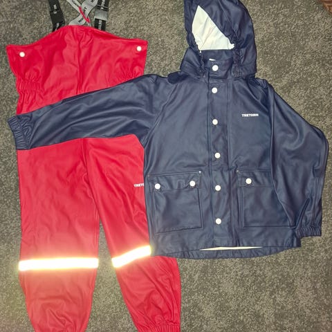 Reiman sadetakki ja kurahousut kokoa 116, ollut käytössä yhdellä lapsella yhden kauden, hyvässä kunnossa pientä reikää lukuunottamatta, joka korjattu heijastavalla paikalla (ks kuva). Ostettu 2018 Nouto tai toridiili