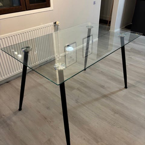 Lasinen ruokapöytä, mustat jalat.