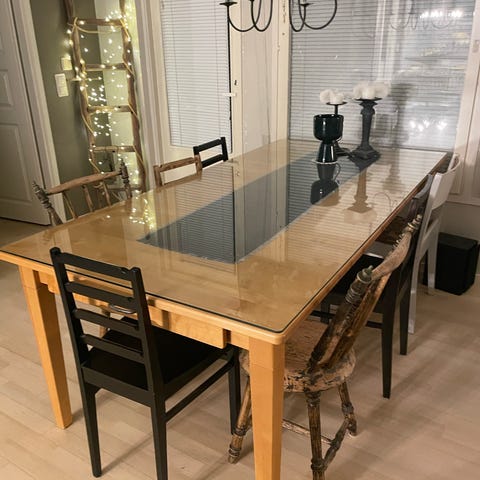 Lasinen ruokapöytä+tuolit