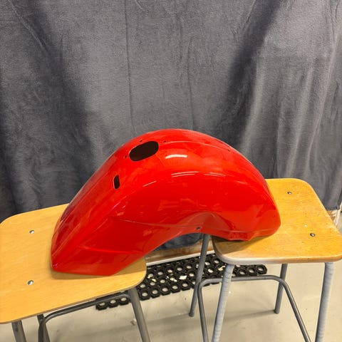 Hyvässä kunnossa oleva vespan alkuperäinen tavarateline sopii LX50 malleihin. Kiinnittyy valmiiksi oleviin kauhukahvoihin. Sivussa pientä naarmua kaatumisesta, jota ei edes huomaa ilman taskulamppua. Vespan logo näkyy kaiverrettuna, mutta vaikea erottaa kuvassa.