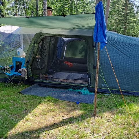 Tämä teltta tuotiin meille Isosta-Britanniasta, mutta valitettavasti meillä ei ole sille enää käyttöä ja haluaisimme sen muuttamaan toiseen rakastavaan kotiin. Teltta on hyvässä kunnossa ja laadukas. Siinä on kaksi sisämakuuhuonetta ja se on suunniteltu neljälle aikuiselle, vaikka sinne mahtuisi useampikin.