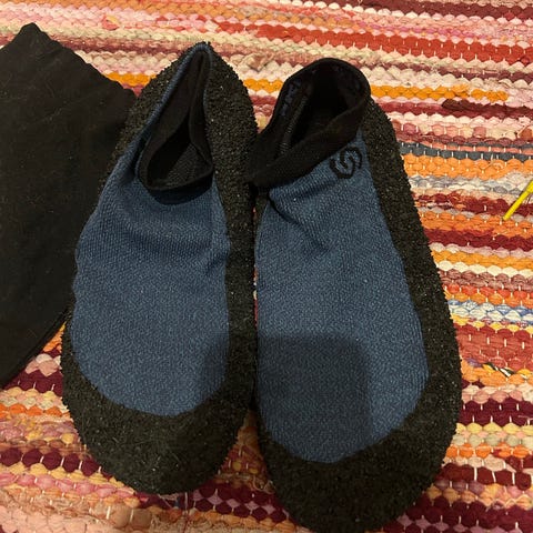 Hyvä kuntoiset sukkakengät. Toinen ollut pari viikkoa lapsella kipsinsuojana. Eivät ole olleet aikuisen käytössä. Säilytyspussi mukana.