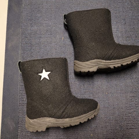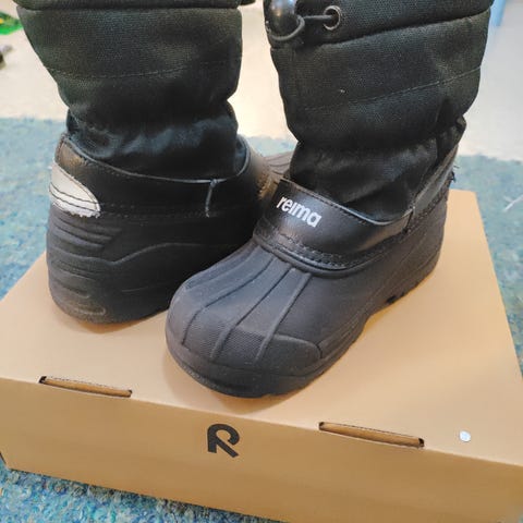 Reima huopakengät. Ulkokunto moitteeton, heijastimista pinta osittain irronnut, mutta muutoin ei moitetta. Sisällä irrotettava huopapohjallinen, pohjallisen pituus 19,5cm.