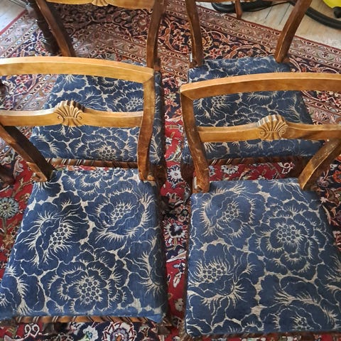 Ranskalaistyyliset antiikkituolit (verhoiltava uudestaan)