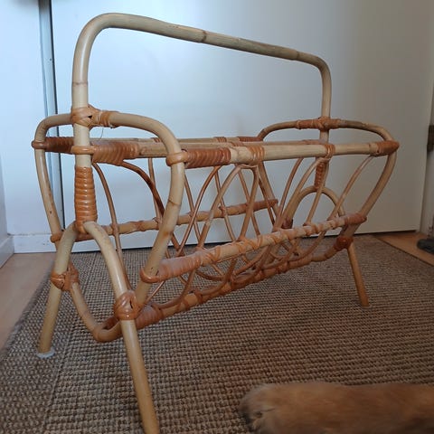 Rautainen lehtiteline. Menee kätevästi kasaan.