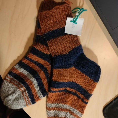 Tyttöjen käsinkudotut villasukat. Ehjät ja hyväkuntoiset.