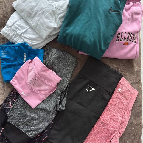 Myydään alla olevat, vähän käytetyt, tyttöjen jumppa vaatteet: