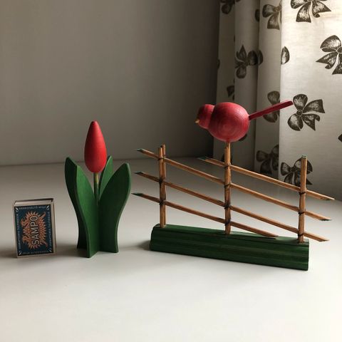 3kpl Johan minikukkia. 2kpl liila sydänkukka ja 1 kpl tulppaani. Korkeus 6cm.