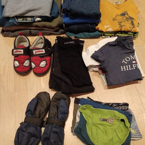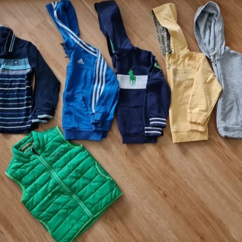 Käytettyjä, ehjiä ja yleisilmeeltään varsin siistejä vaatteita settinä. Vaatteiden koot 110 ja 116cm.