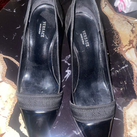 Italialaiset Versacen mustat nahkaiset korkokengät.