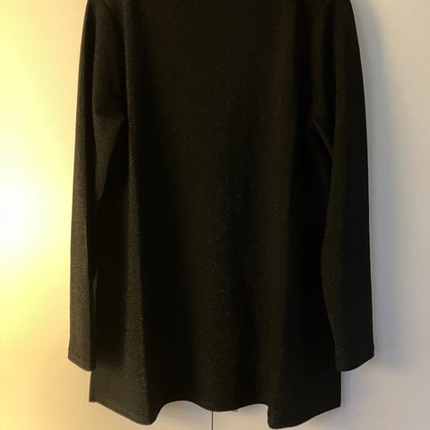 Avonainen lyhyt neule. Epäsymmetrinen helma. Kiva selkäpuolen kuviointi.
