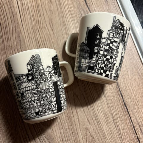 Myydään hyvässä kunnossa olevat Marimekko Oiva siirtolapuutarha 2,5dl kahvikupit 2kpl.