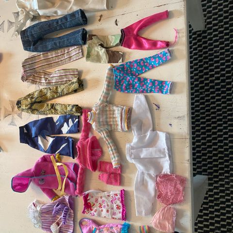 Myydään hienoja itse tehtyjä Barbie vaatteita. Villatakeissa nappi-kiinnitys, hameissa tarranauha-kiinnitys. Myydään mieluiten kaikki yhdessä, 5 kpl villatakki ja 4 kpl hame = 4e. Yksitellen 50snt/kpl.