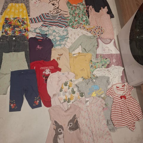 - loput vaatteet halutessaan kaupan päälle (3kpl bodyt + housut koko 74, 3kpl bodyt 68/74)