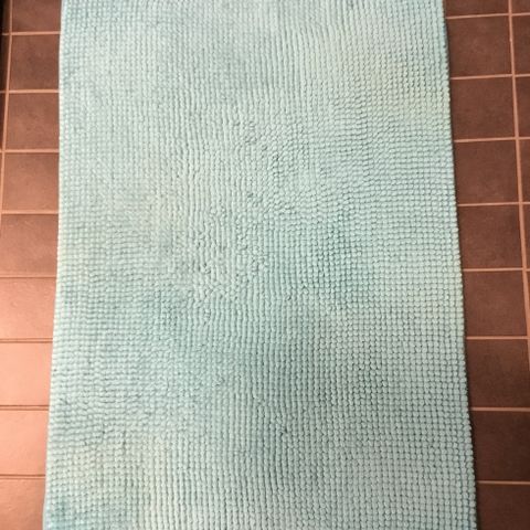 Myydään hyvässä kunnossa oleva Ikean turkoosi kylpyhuoneen matto 63cm x 90cm.