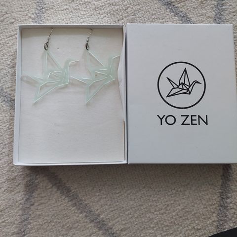 Settinä valkoiset korvakorut sekä kirkas/sinertävä kaulakoru pitkällä ketjulla, yozen