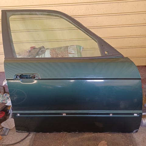 Suora ja lommoton, hitsailematon, kittailematon ovi. Alaosan pintaruosteet ajettu rälläkän messinkiharjalla pois ja fosforihapotettu. Ylimääräisiä reikiä en ole löytänyt. Voidaan myydä 130€ ilman sähköistä ikkunahissiä. Ollut -92 540iA. Ei käy kuin facelift ilman muutostöitä.