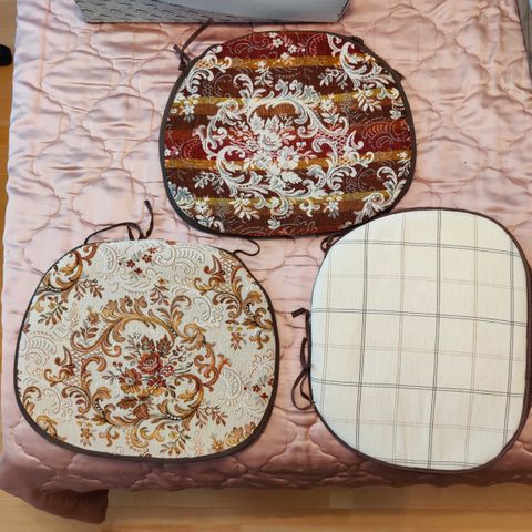 Istuintytnyt 7 kpl beiget valkoisella tähdellä, muutama haalea käytön jälki. Voi myös käyttää nurin puoli vain eli beiget.
