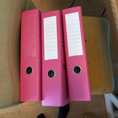 Myydään kaksi mappia. Papereiden säilytykseen, sisäpuolella renkaat papereiden kiinnitykseen