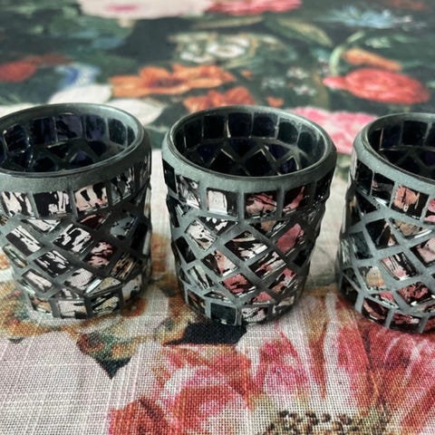 Myydään pieni koriste, missä paikka tuikulle, peili ja oranssia tekokukkia