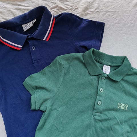 Kolme (116cm, 128cm ja 140cm) ovat samanlaisia keskenään ja neljäs paita, joka on vähän vaaleampi, on kokoa 116 cm