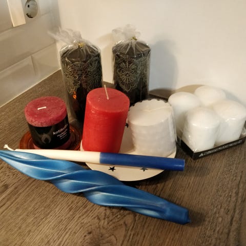 Metalliset kynttilänpidikkeet joulukuuseen ja niihin kynttilät