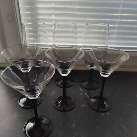 Vähällä käytöllä olleet ranskalaiset mustajalkaiset lasit, cocktail-lasit, lasin korkeus 12,5cm, hinta yhteensä 17e, nouto Turku, Turun seutu, Turku-Uusikaupunki, Turku-Lappeenranta