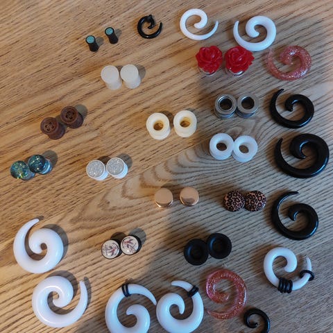 Earrings Plugs and Tunnels, Size 18 / Korvakorut, plugit ja tunnelit, koko 18