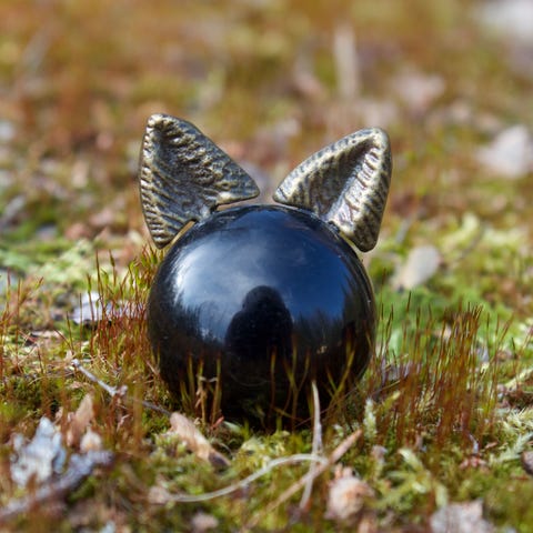 Resiinivetonuppi, jossa hopeansävyiset "niitit".