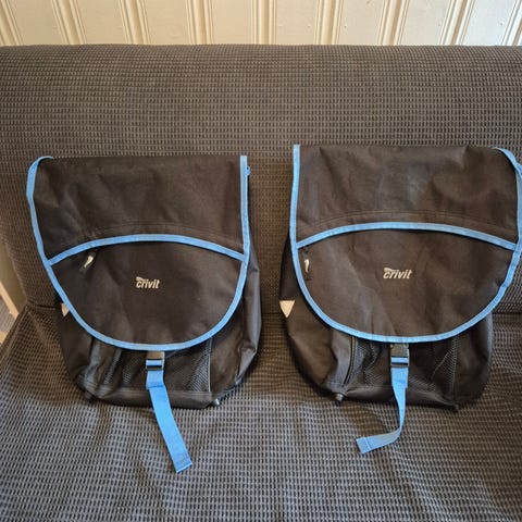 Kuvan pyörälaukut etsii uutta käyttäjäänsä kun ei täällä ole tarvetta enää. Kassien pohjassa, omassa lokerossaan on sadesuojat laukuille. Katsothan muut kohteeni myös. Postitus onnistuu myös mutta ensisijaisesti olisi nouto mieluinen toimitus näille.