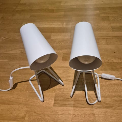 Kaksi lamppua, jalustassa tyttö ja poika hahmot. Toisessa lampussa pieni lohkeama (katso kuva 3)
