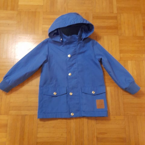 Todella hyväkuntoinen Mini Rodini Pico välikausitakki. Muutamassa napissa tyypillistä kulumaa, mutta muutoin en löytänyt mitään moitteita. Koko 104/110cm. Savuton ja eläimetön koti.