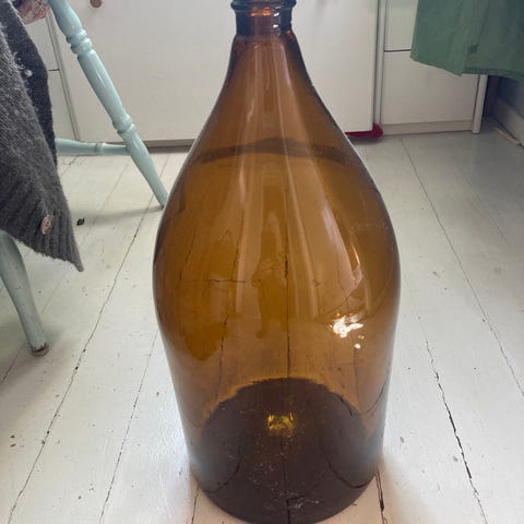Myydään värillinen iso lasipullo kotiviinin tai kotikaljan tms tekemiseen.