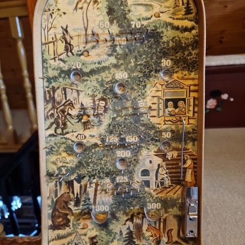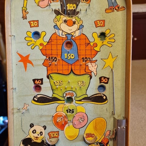 1960-luvulta fortuna peli, urheiluaihe. Tämä ollut 50 vuotta sitten kovassa käytössä, mutta mekanismit toimivat moitteettomasti ja kaikki nupit ovat yhtä lukuunottamatta paikallaan, samoin kaikki muut osat.
