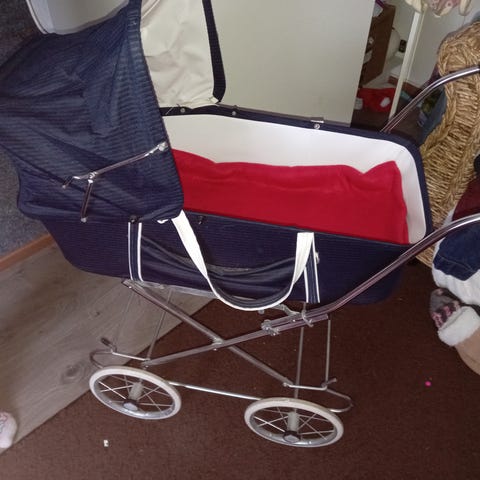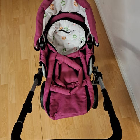 Hyväkuntoiset nukenvaunut, ainut miinus työntöaisan pehmuste rikki.