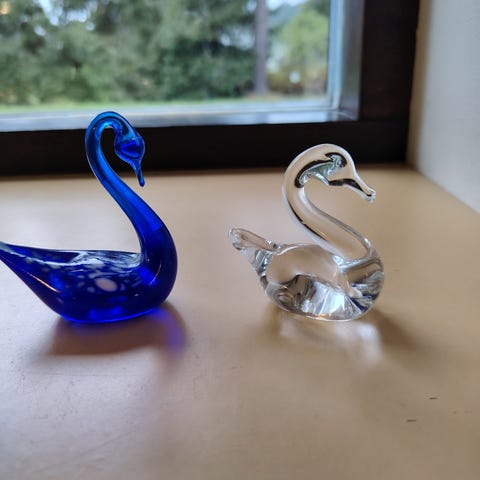 Studiolasi Pertunmaa 1977 siniset lasijoutsenet