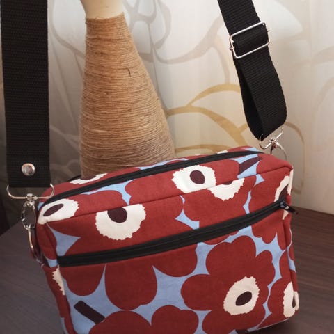 Hihnan pituus 133cm pisimmillään, säädettävissä lyhyemmäksi.