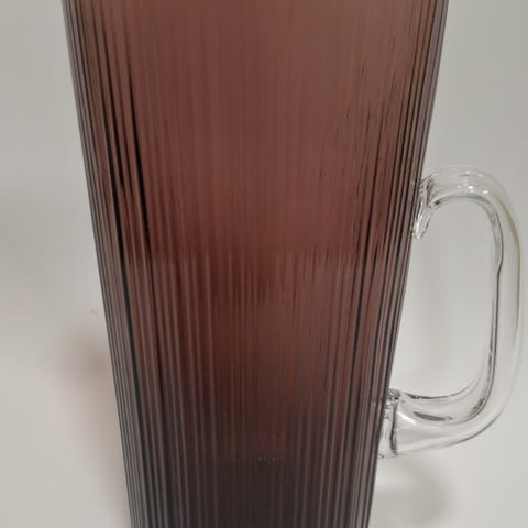 Iittala lasinen kaadin, violetti väri, lasimateriaali. Sopii nesteiden tarjoiluun keittiössä tai ruokapöydässä. Erinomainen kunto.