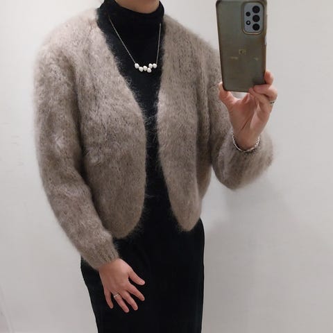 Upean kaunis ja ihanan pehmeältä tuntuva kid mohair -takki. Laadukas materiaali tekee siitä kevyen mutta lämpimän, täydellisen kerrospukeutumiseen ja tuomaan ylellistä viimeistelyä arkeen tai juhlaan.