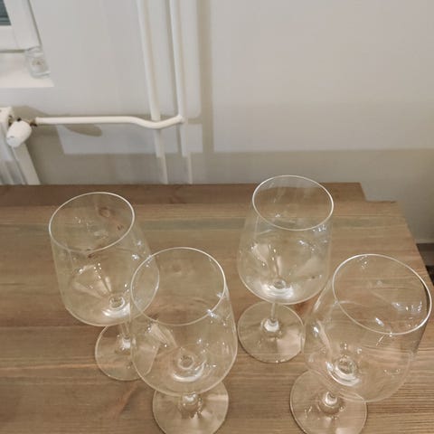 Uusi, käyttämätön neljän kappaleen setti upeita punaviinilaseja, alkuperäisessä laatikossa.