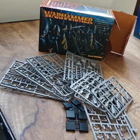 Myydään vuoden 1999 Games Workshop Warhammer Dark Elves setti. Osa haltioista rakenneltu ja osa osista on edelleen kiinni kehikoissaan. Osa liimauksista jättää toivomisen varaa, mutta hyväkuntoisia ovat.