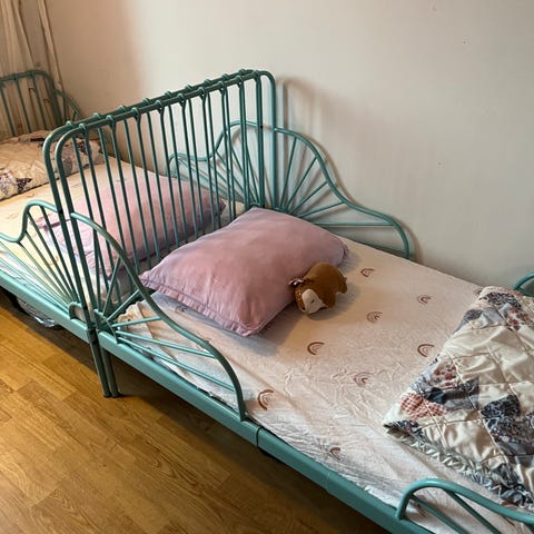 Erittäin hyväkuntoinen lasten tai nuorten sänky. Yksi pieni särö puussa löytyy sivussa. Sänky jatkettavissa. Hintaan sisältyy erittäin hyväkuntoinen patja ja jatkopalat.