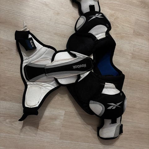 Myydään kuvan/otsikon hartiasuojat, kiekko- ja ringettejyniorin käytössä olleet kevyet suojat, pintakulumaa mutta muuten hyväkuntoiset.