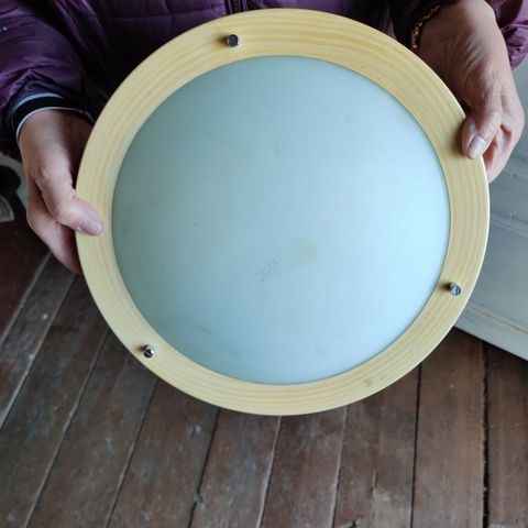 Myydään kattoplafondi, kaksi lamppua. Halkaisija 41,5 cm. Lampussa pieni valmistusvirhe, mutta ei näy kuin läheltä tarkkaan katsoessa viimeisessä kuvassa. Ei erotu lampun katossa.